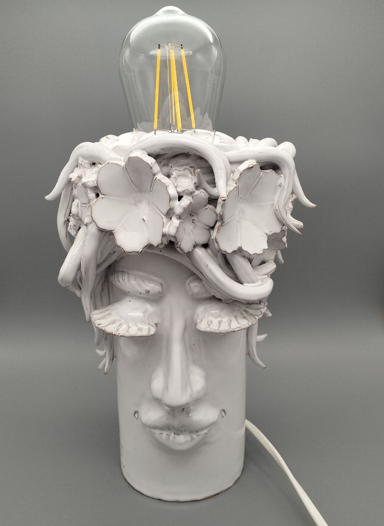 Un lampada in ceramica a forma di volto di divinità greca sarebbe un pezzo d’arredamento molto elegante e sofisticato.