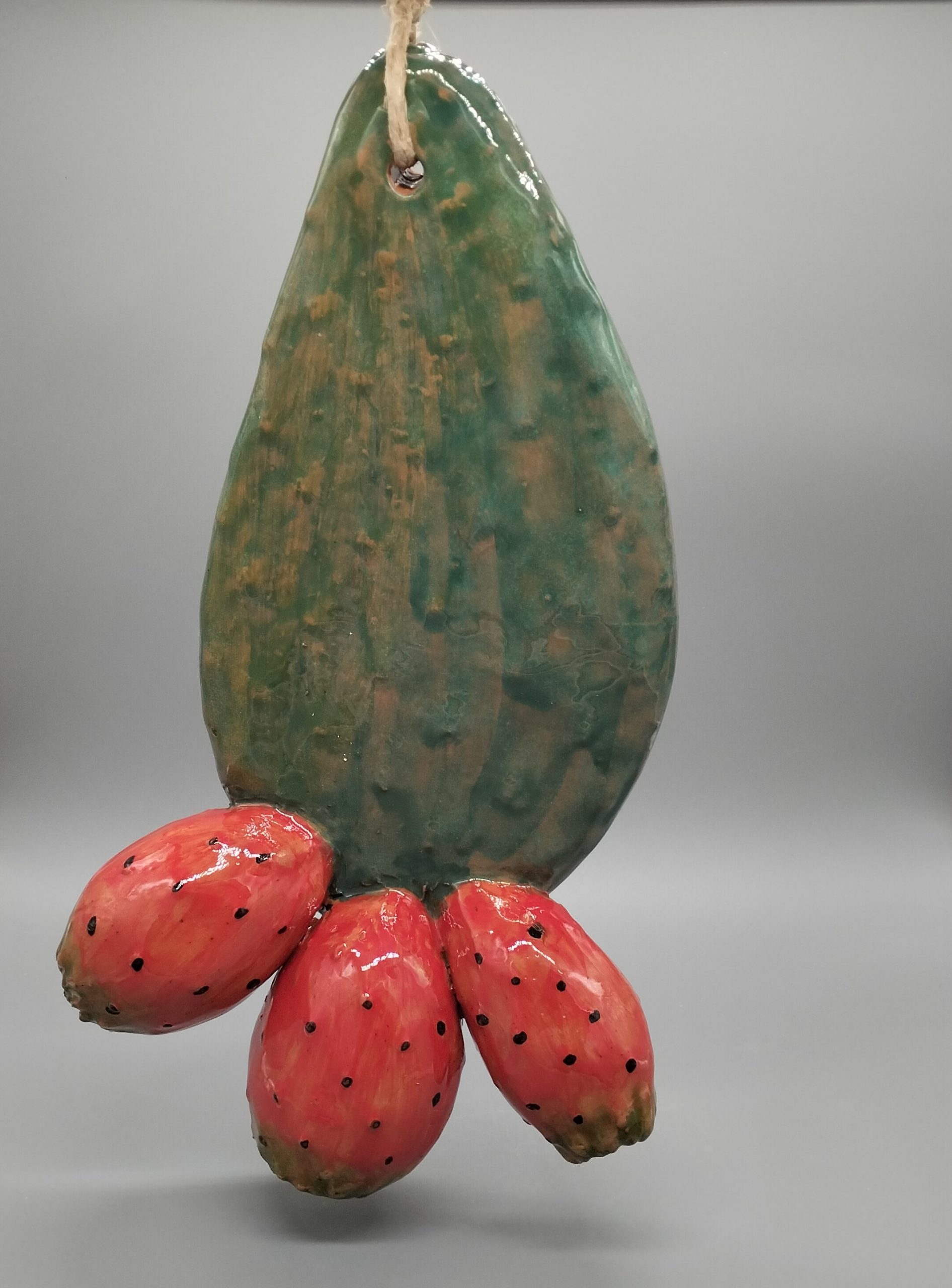 Design: La foglia è modellata con particolare attenzione ai dettagli, richiamando la forma e le venature della foglia del ficodindia, mentre i frutti, generalmente di colore rosso o giallo, sono rappresentati con una grande cura per i particolari, rendendo l’oggetto molto realistico.