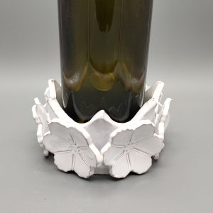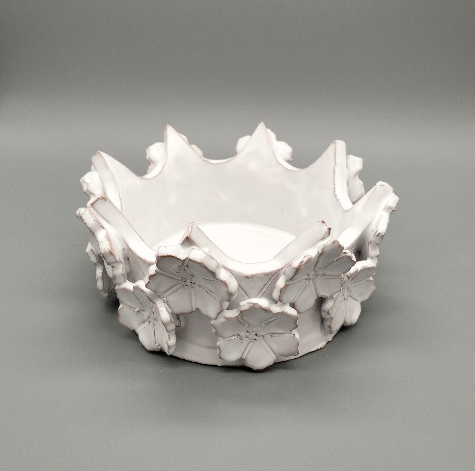 La ceramica bianca offre un aspetto elegante e pulito, mentre i dettagli in rilievo, come i fiori, arricchiscono il pezzo con texture e profondità.